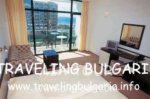 The large restaurant offers eating at the buffet; a la cart restaurant having comfortable terraces with the view to the sea and varied meals from the European cuisine. The hotel is only 35 km away from Burgas airport and 100 km away from Varna near to the bus stops to the Old Nesebar, Vlas and Elenite.