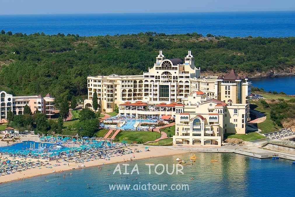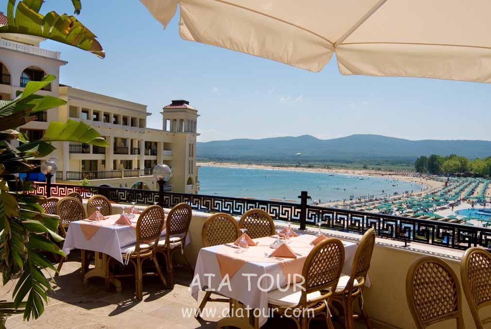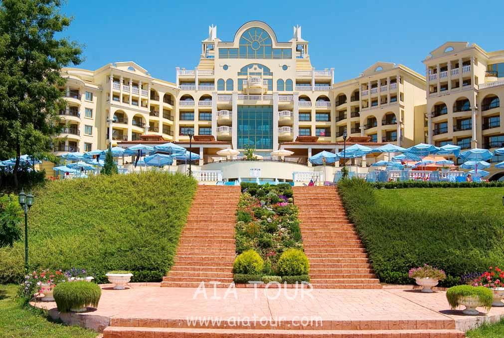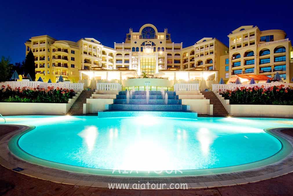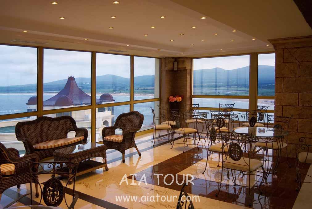 Hotel Marina Royal Palace is an oasis of calmness and pleasure and offers an exclusive range of services, which could satisfy your demands, whether you are a refined guest or successful businessman. The extraordinary atmosphere, luxury and comfort present in every place will reveal the magic moment throughout your holiday. The hotel has a reception desk, a main restaurant “Marina Palace”, panorama - and lobby-bars, sauna, steam bath, jaccuzi, in-door swimming pool, fitness center, beauty saloon, massage center, conference room. A small paradise full of all the luxury you could imagine, so that your dreams come true with your stay at Marina Royal Palace.