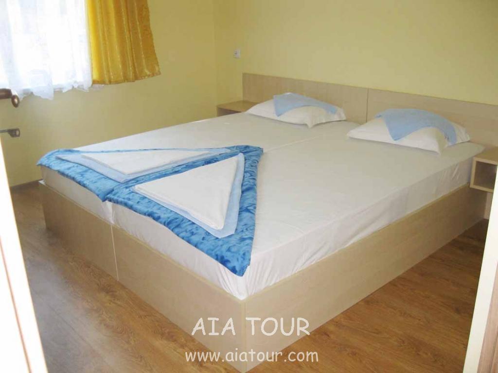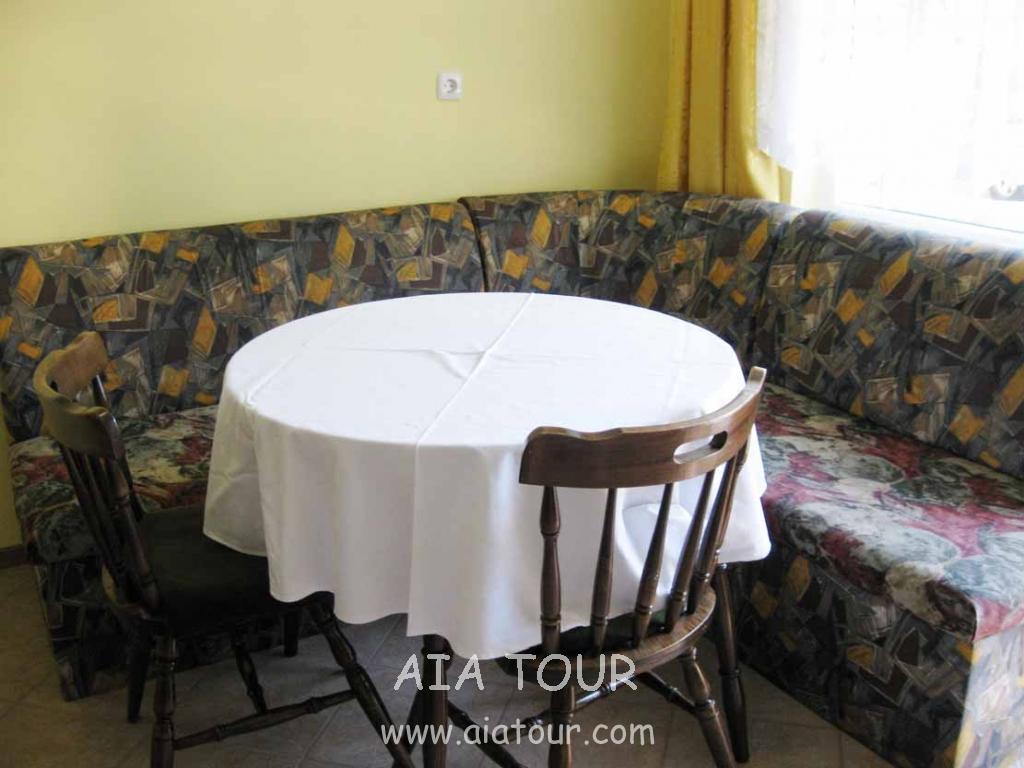 is located in the new part of the town 300 m. from the centre of the town and 370 m. from the beach. The apartment has 1 double room , 1 triple room , kitchen and is equipped with bathroom , WC , 2 balconies , refrigerator and cable TV. The rooms look down onto the street.