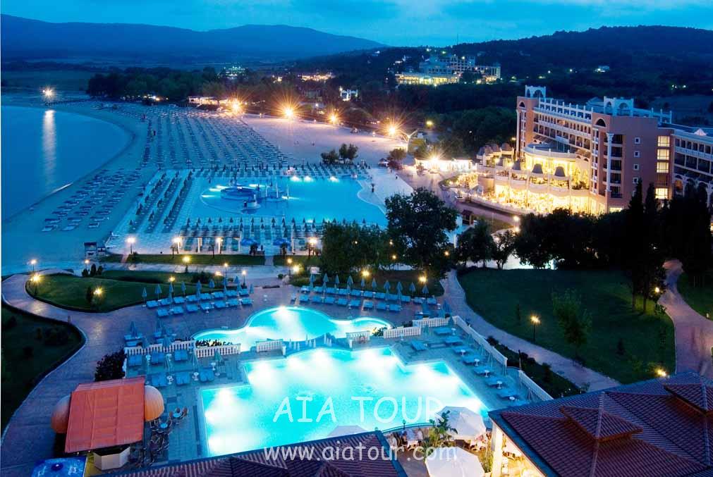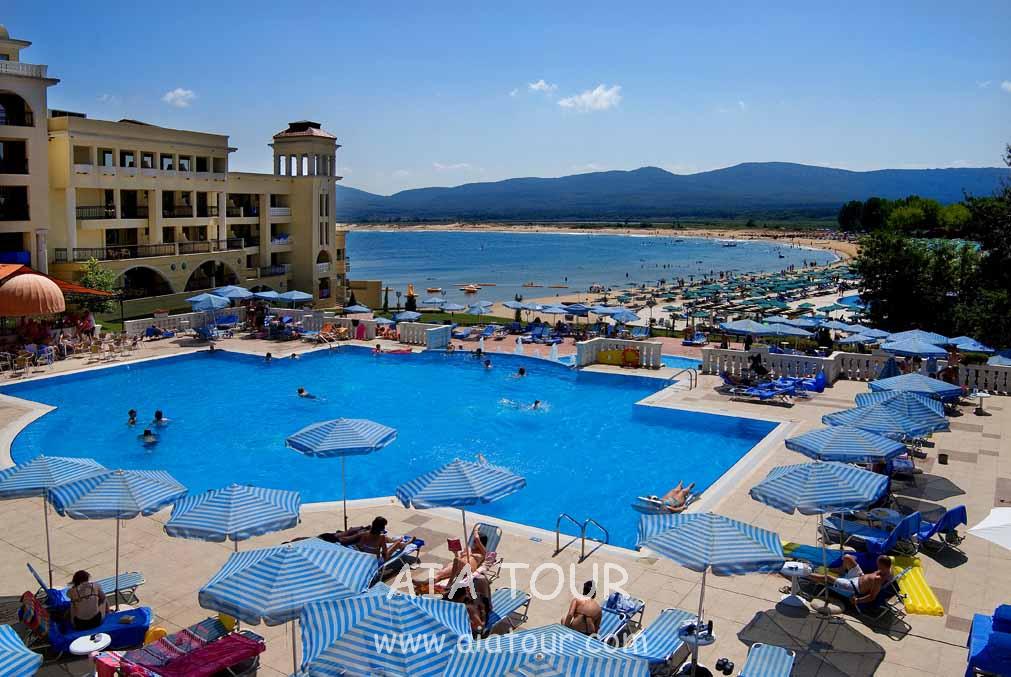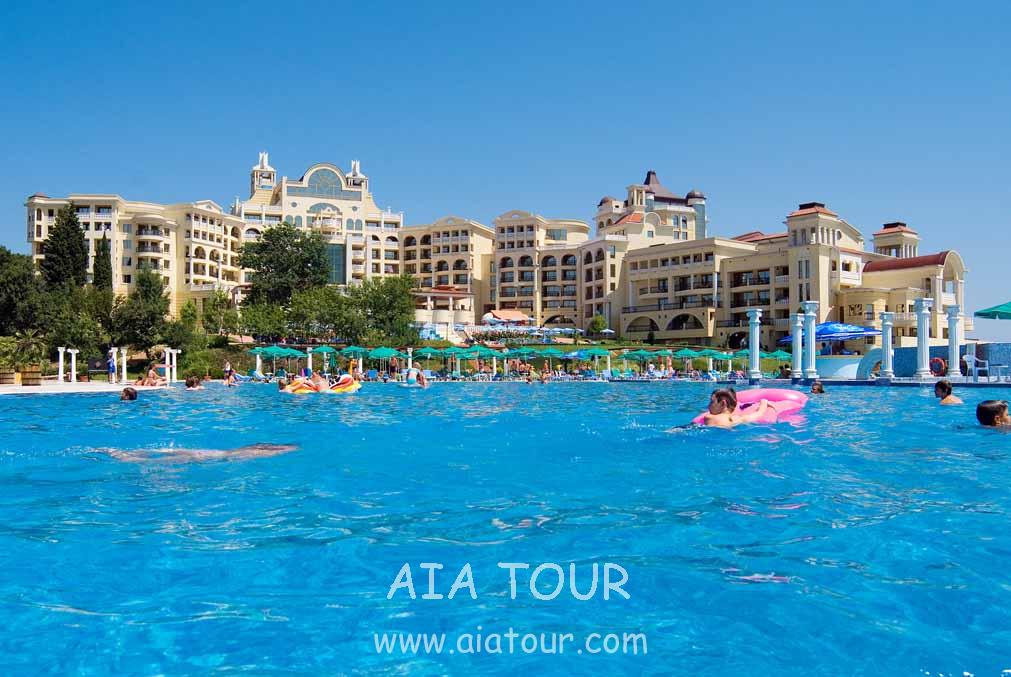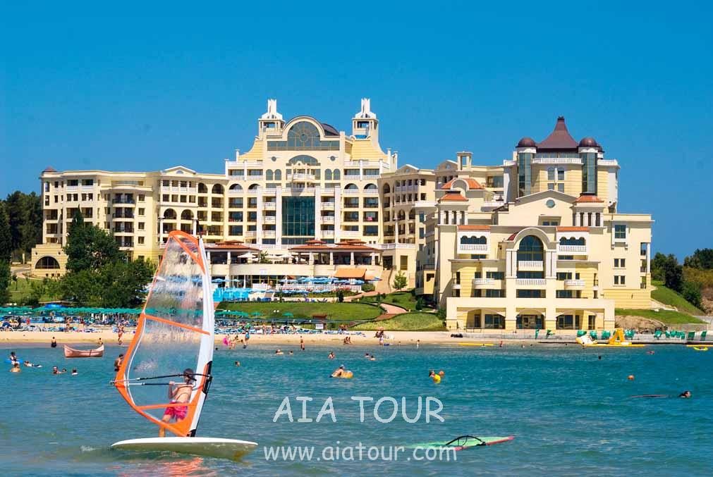 Hotel Marina Royal Palace is an oasis of calmness and pleasure and offers an exclusive range of services, which could satisfy your demands, whether you are a refined guest or successful businessman. The extraordinary atmosphere, luxury and comfort present in every place will reveal the magic moment throughout your holiday. The hotel has a reception desk, a main restaurant “Marina Palace”, panorama - and lobby-bars, sauna, steam bath, jaccuzi, in-door swimming pool, fitness center, beauty saloon, massage center, conference room. A small paradise full of all the luxury you could imagine, so that your dreams come true with your stay at Marina Royal Palace.