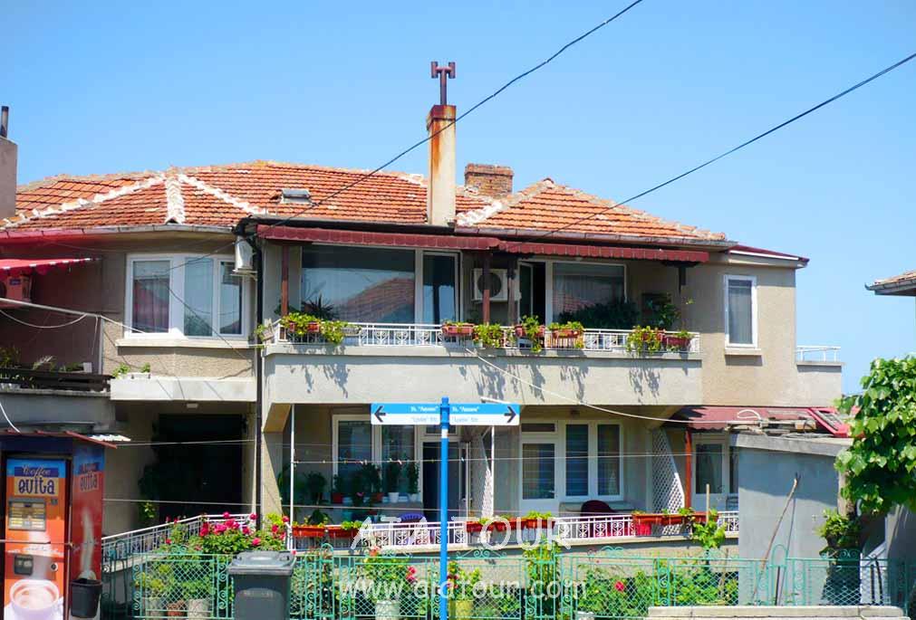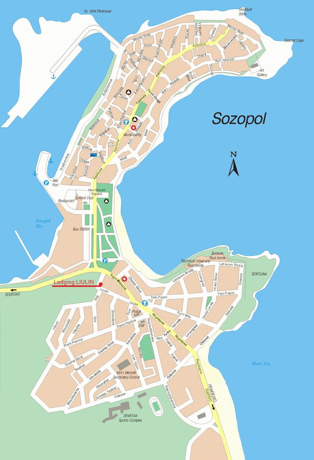 town and 150 m. from the beach. The lodging has 3 double rooms and 2 triple rooms. All of them are equipped with bathrooms , WC ,