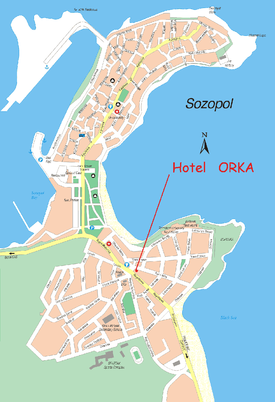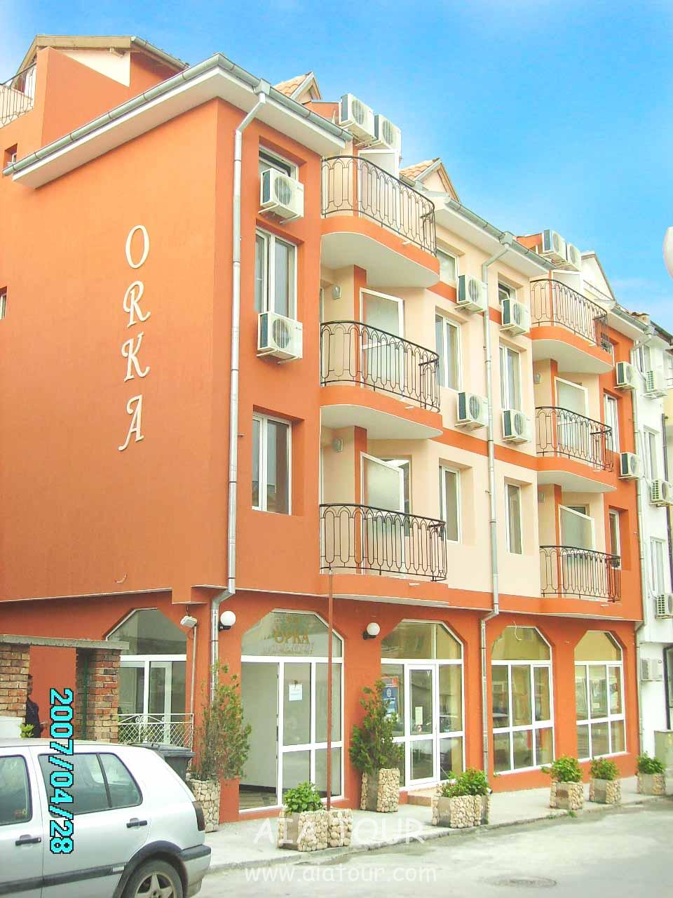 Hotel “Orka” is situated in the center of the new part of Sozopol, 80m from the Central beach and 200m from “Harmany” beach. The hotel has 10 double rooms, 2 studios and 2 apartments. All rooms are equipped with bathroom, cable TV, refrigerator, balcony, air-condition and internet.